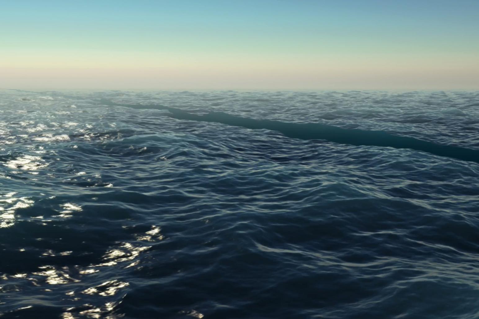 This exhibition in Stella Art Foundation's space on Mytnaya Street marks the first solo showing of a 2009 installation by the leading Russian media art group Bluesoup (Alexey Dobrov, Daniil Lebedev, Alexander Lobanov, and Valery Patkonen). The work is a film depicting an endless ocean expanse cut in two by a visible boundary, and is part of the Foundation's collection.