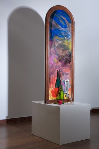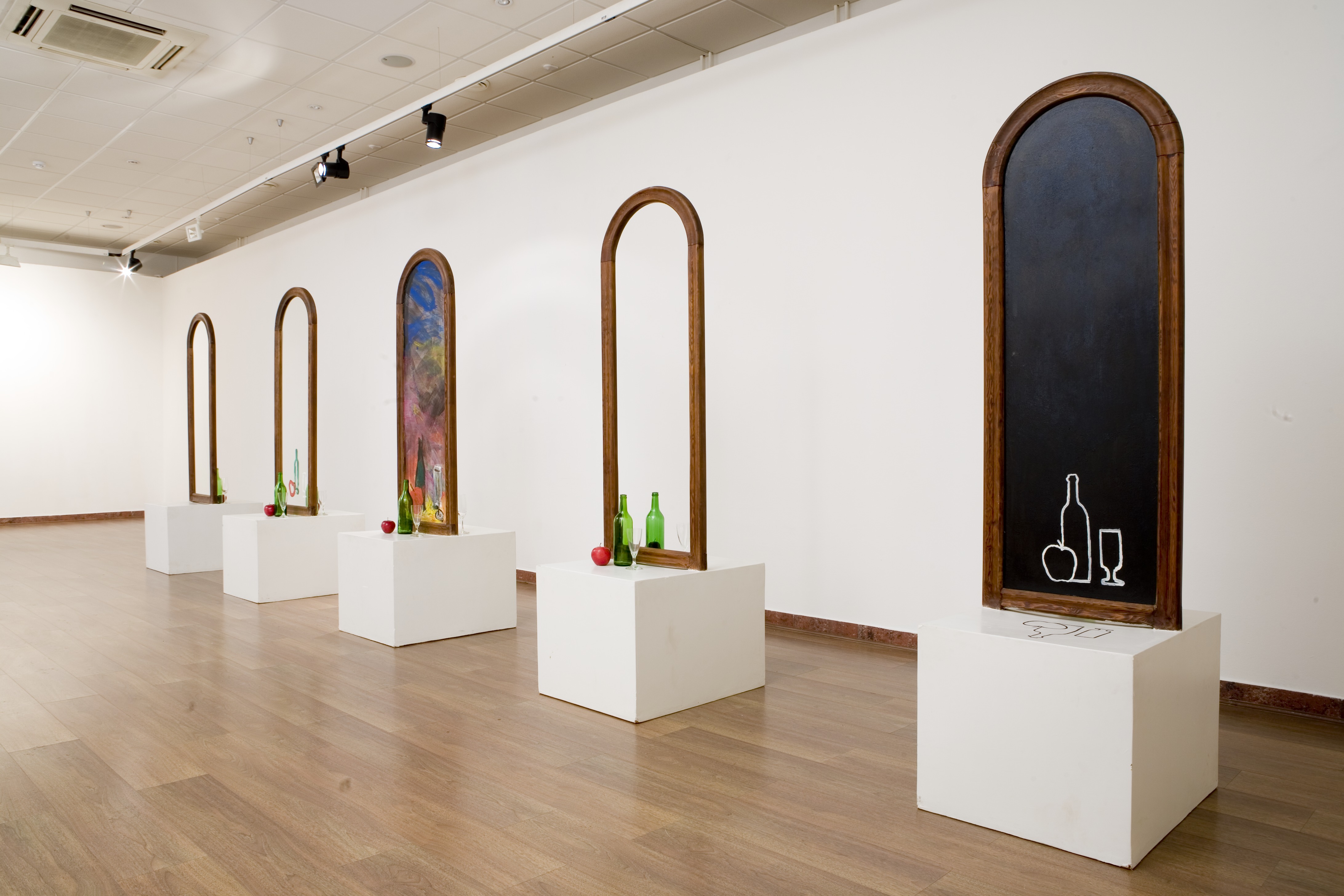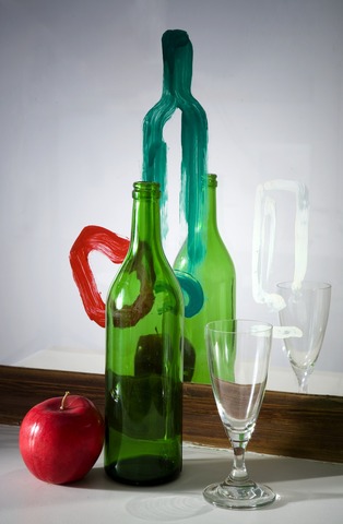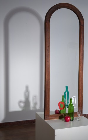The “Theory of Reflection 1” (1978-92) easily turns material objects into forms of thinking, the physical reflection into the reflexive thought. An absolutely classical still-life (a bottle — a wineglass — an apple) by methodically repeating themselves on both sides of the frameworks, goes through an almost metaphysical series of its reflections and transformations: from non-existence to existence, from decidedly pictorial/photographic to ideal and eidetic. The question of which of the reflections and representations is more true and beautiful (which is closely associated with the eternal themes of beauty and justice, of the mimesis and the realism in art and the very origins of the latter) is pointedly left out: the different versions of answers are equaled by putting them into one and the same row of the elements of installation. By exploring the relationships of the universes found on both sides of glass-canvas-mirror-framework, Chuikov draws in his own way the borderlines between the work of art and the world, the artist and the spectator, implying that this theme can’t be exhausted once and for all.