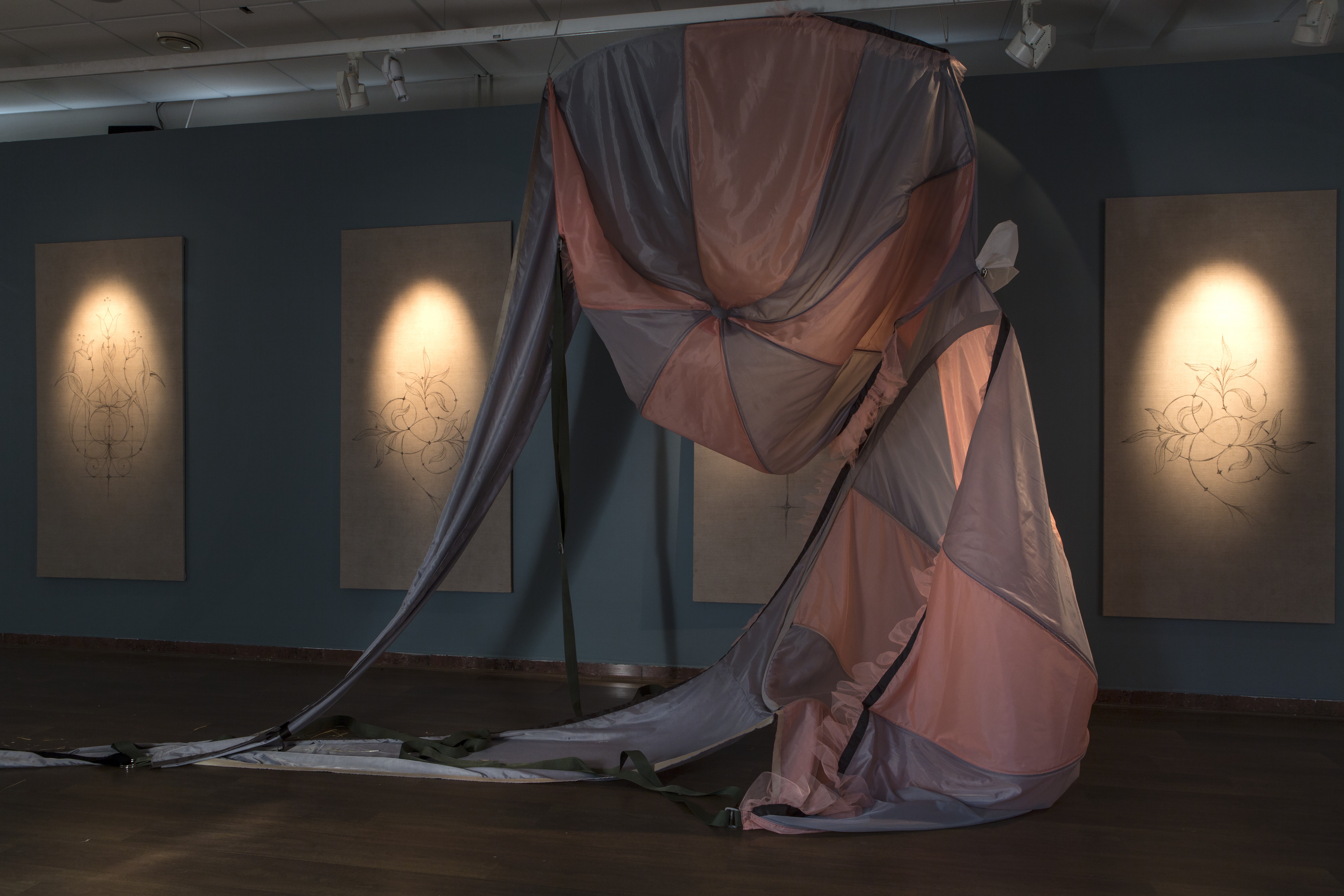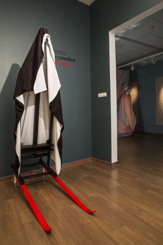 Stella Art Foundation is proud to host an exhibition by Artistic co-op Cupid. This the fourth exhibition by the Cupids at Stella Art and, like its forerunners, it consists of a highly intense installation and an eccentric performance. It goes without saying that, for the Cupids, the density of the exhibition environment is equivalent to the semantic density of their text. Judging by the fact that the installation takes up, not merely the walls and floor, but also the ceiling, and that the performance is a full rap recitative in a dead language, the authors must surely have an important message.