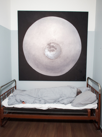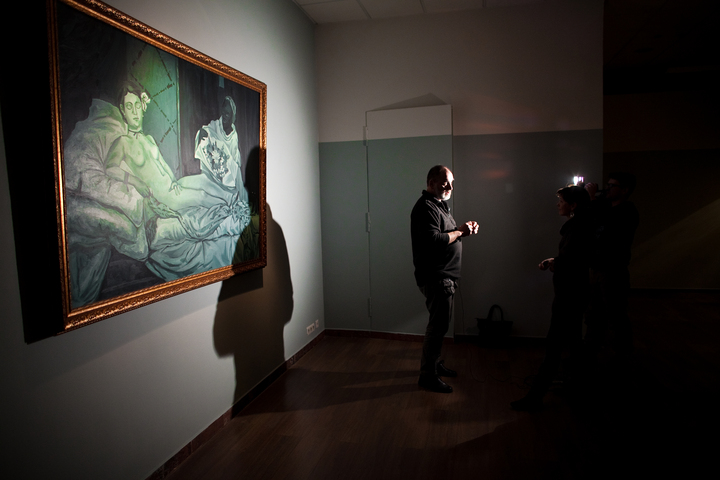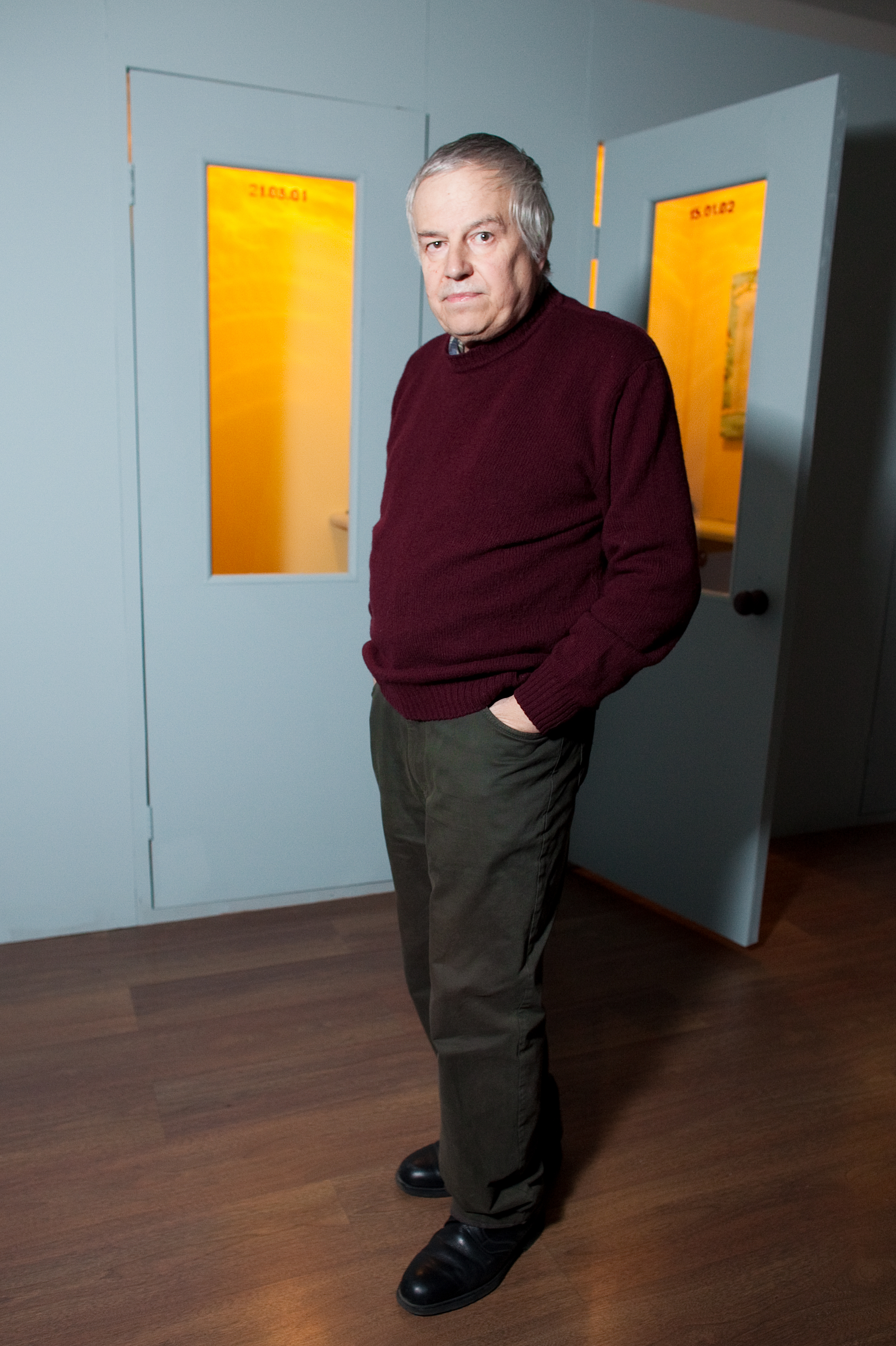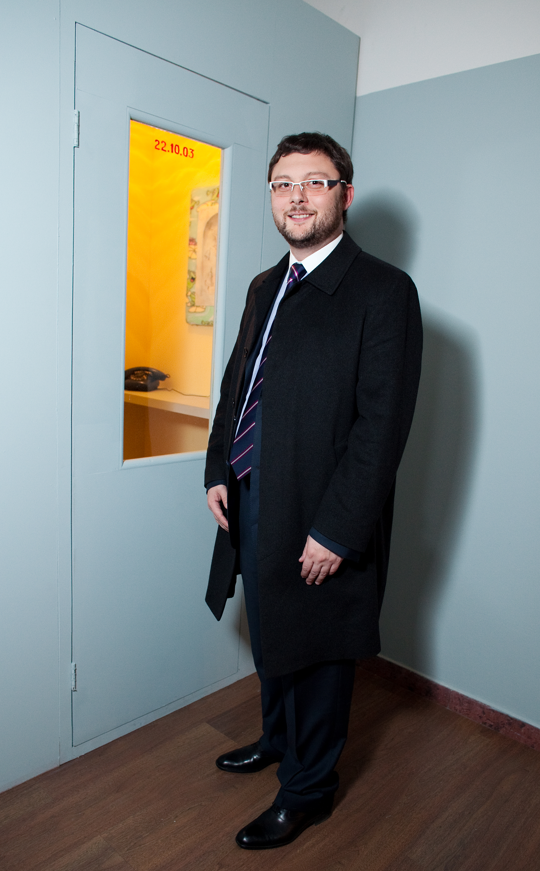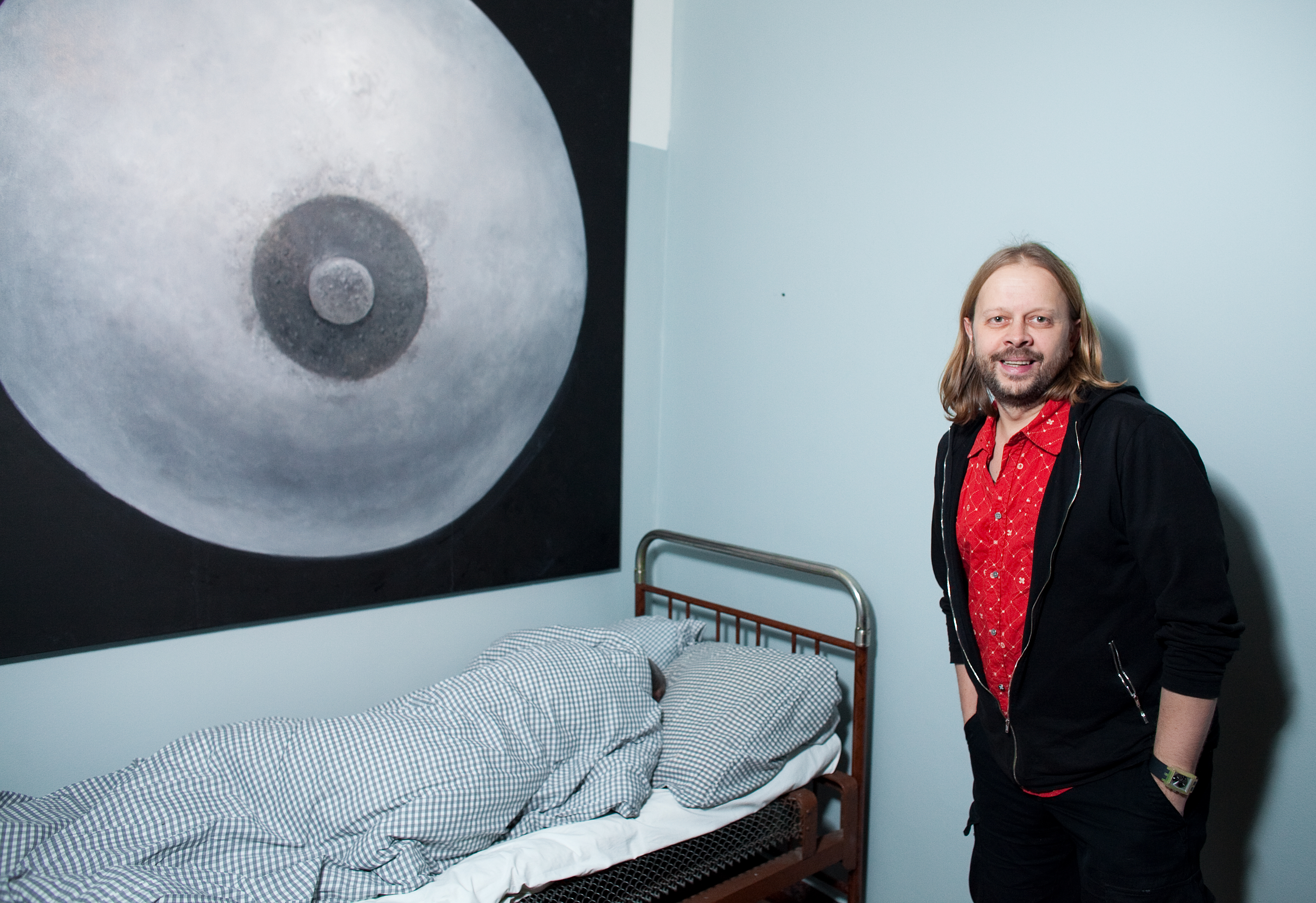 Meanwhile the second exhibition object, or rather subject-personality — the artist Yuri Albert — will sleep peacefully next to the cubicles in an old bed from his country house. It should be noted that he only sleeps at the private view. The rest of the time this exhibit consists of the bed alone, which somewhat changes the intonation of the project.