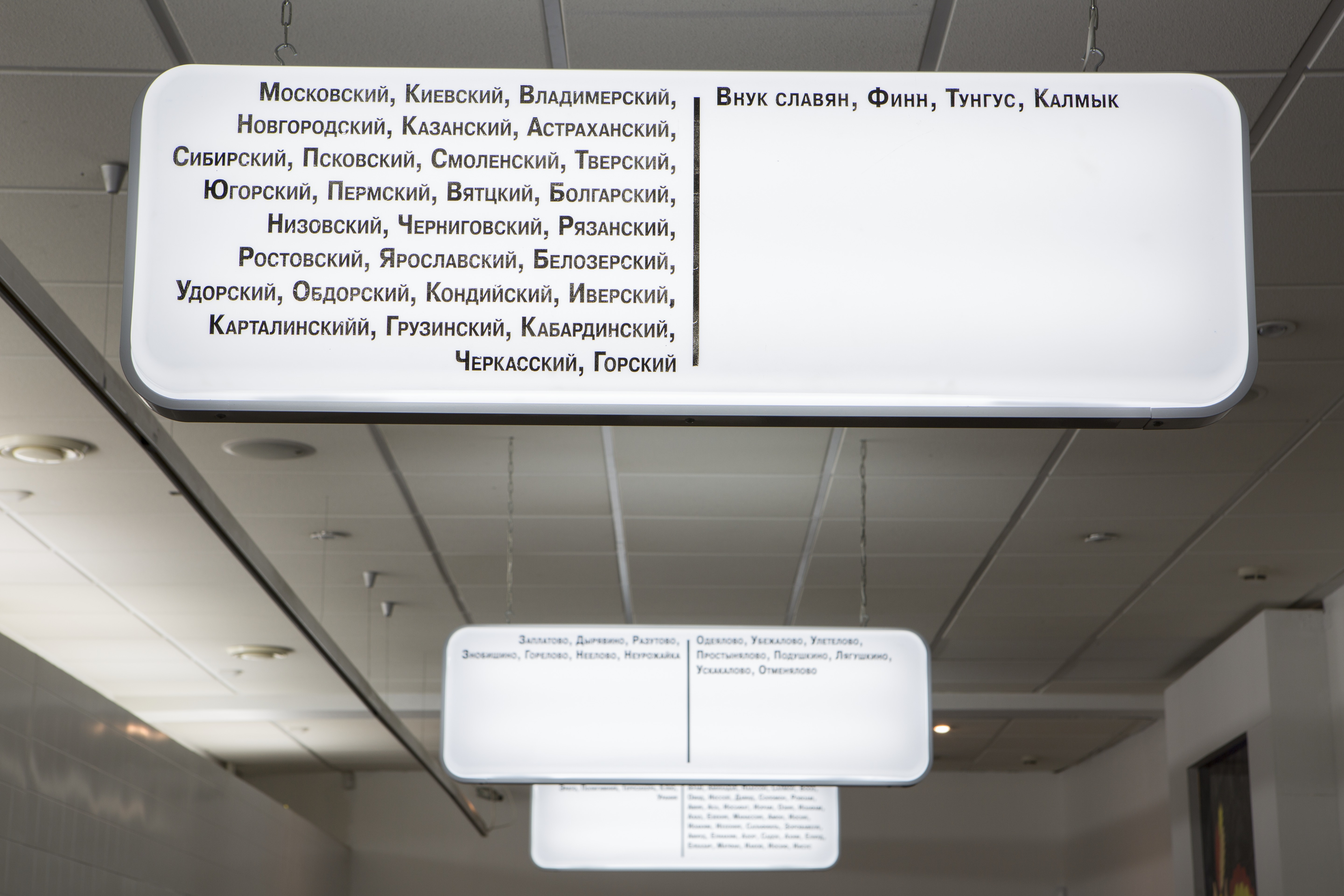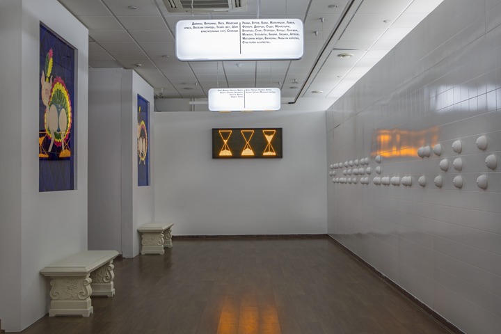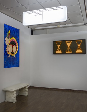 Artists of the group say: “All our projects are based on the ‘swan, pike and crawfish’ principle: we make incompatible models of art and different ways of understanding art collide in one installation. Such a collision produces new meanings that may have been absent from our individual works. In the new exhibition we used the metaphor of art as a subway system, where artistic ideas rush with incredible speed, jumping from one line of artistic movements and trends to another. The exhibition is structured as a connection hub, a station where one can cross over from one understanding of art to another. Ideas of the co-authors, who are also the station masters, through their collisions and transformations, change themselves, much like particles in a booster, into new, yet unseen elements. On the other hand, this process could also be perceived as a Purgatory: some ideas end up in the paradise of the museum, while others are forgotten.”