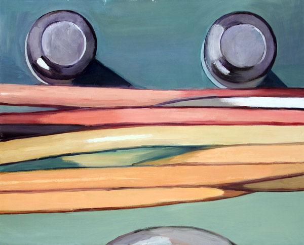 Alexandra Galkina creates abstract graphics, the stylistics of which is similar to the one of Soviet suprematism. Moreover, her works contain much simplified shapes of real objects: patterns of ladies’ wear, details of factory machines, microcircuits, building constructions and elements of household furniture. Diana Machulina makes ironically absurd machines and creates coalescent art metaphors. Ksenia Gnilitskaya displays abstractedly beautiful photographs, which, in fact, represent shots of twisted car wreckage. Alexander Pogorzhelsky draws pictures depicting pieces of meat and hardware fragments, which resemble portraits of some fantastic creatures.