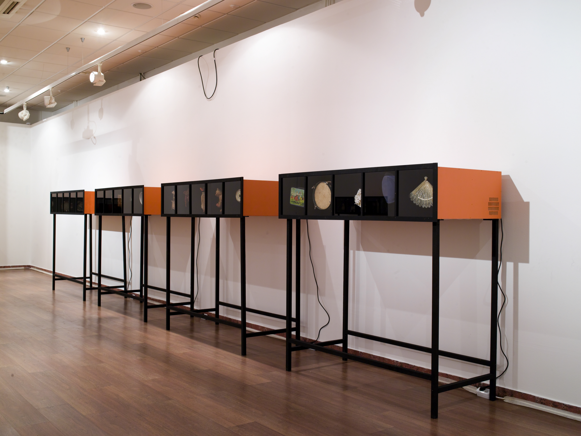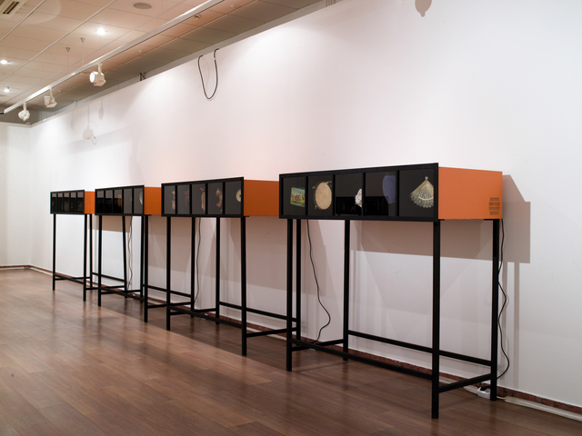 The title of this project is meant to be taken literally. First, because Vladislav Efimov’s installation is indeed a collection of material artifacts. Secondly, because it is interactive. The objects in the collection react quite lively to a visitor’s presence: when the visitor touches the box which is the dwelling place of the object, its inhabitant expresses its fright by shrieking, hiding or singing.