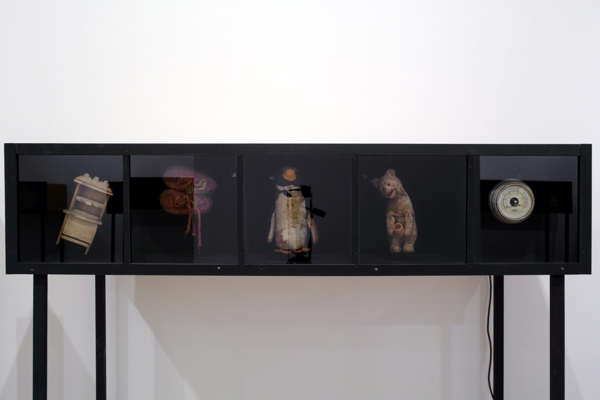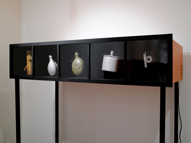 Efremov’s first attempts at photography were essentially “portraits” of things against simple backgrounds: each represented a single object as well as a “keeping unit” of this universal archive. But, while this pattern essentially never changed; Efimov’s objects, increasingly, were showing a tendency to break free from their two-dimensional cage, trying to turn now into stereo-images, now in digitally animated pictures. At some point, they succeeded in their escape, and Efimov’s 1997 project Originals featured, instead of boxed frames, three-dimensional boxes with the objects themselves, hitherto always hidden from direct contact with the audience. This installation, the Fearful Collection, is presented in the same line of “alchemical activity”. Things not only gain volume and density, they are also given a voice and a capacity to move and to initiate basic communication with their surroundings. By the will of the artist, the thought of the physiologist philosopher and the power of technology, they are set in the endless line of creatures run through by the unifying neural current of life.