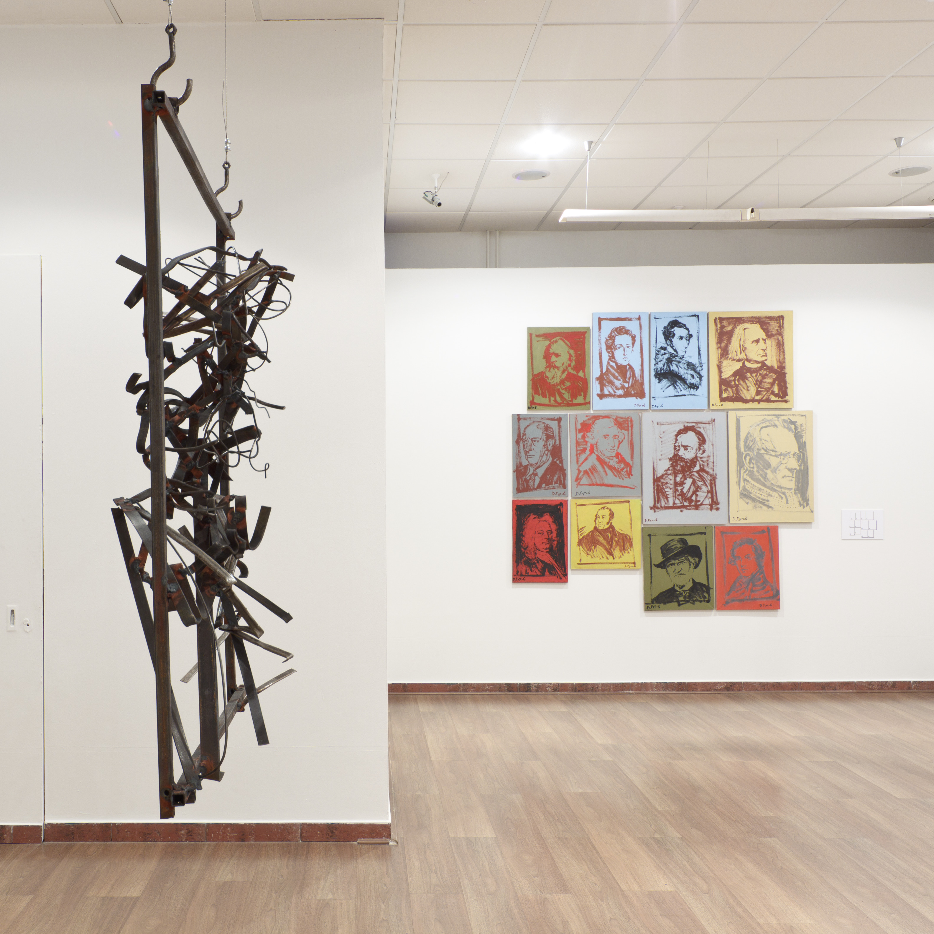 The subjects include Claudio Monteverdi (1567-1643) and Sergei Prokofiev (1891-1953), Wolfgang Amadeus Mozart (1756-1791) and Igor Stravinsky (1882-1971), Gustav Mahler (1860-1911) and Galina Ustvolskaya (1919-2006), Franz Liszt (1811-1886) and Richard Wagner (1813-1882). Each portrait, whether sculpture or painting, is based around drawing and calligraphic lines. The movement of the artist’s hand both creates a diagram of the composer in question’s personality and registers the spectrum of Gutov the music-listener’s reactions.