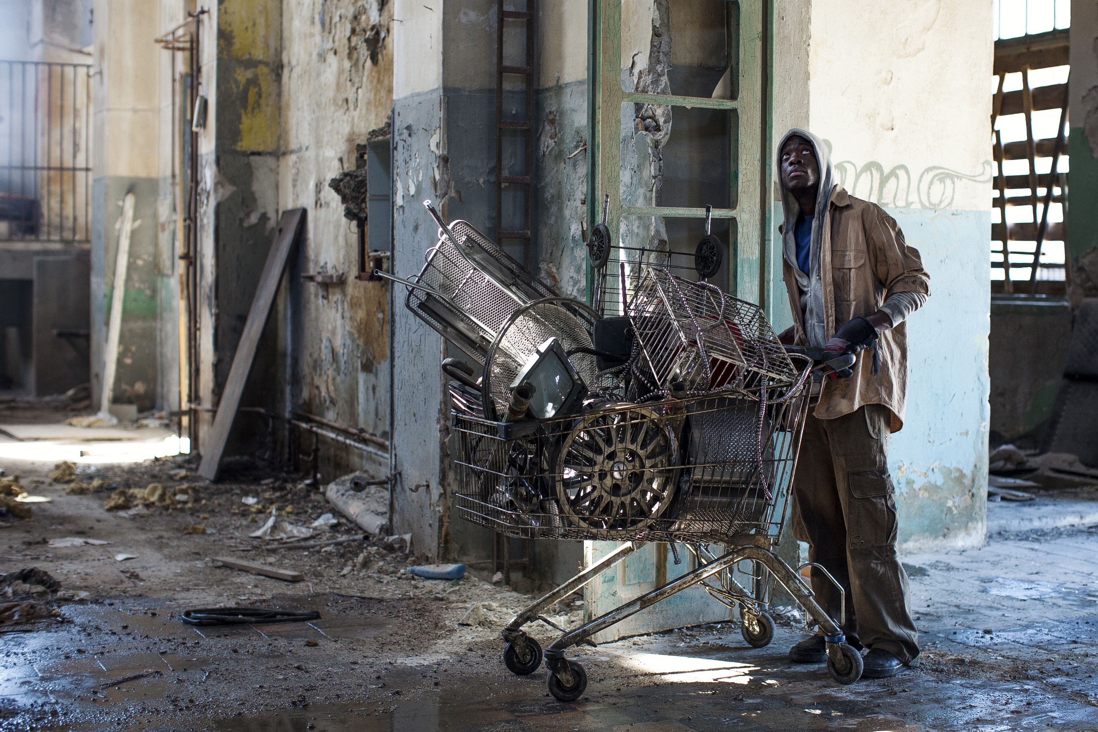 History Zero, the work that represented Greece at the 55th Venice Biennale, comprises a film of three episodes alongside an archive of texts and images. The film questions the value of money and the role money plays in the formation of human relationships by depicting the experiences of three very different individuals; an African immigrant who wanders the streets of Athens pushing a supermarket trolley and collecting scrap metal to sell; an artist who observes and records street scenes at random with his i-Pad; an art collector suffering from dementia, who, living alone in a museum-like house, is consumed with creating origami flowers using euro banknotes.