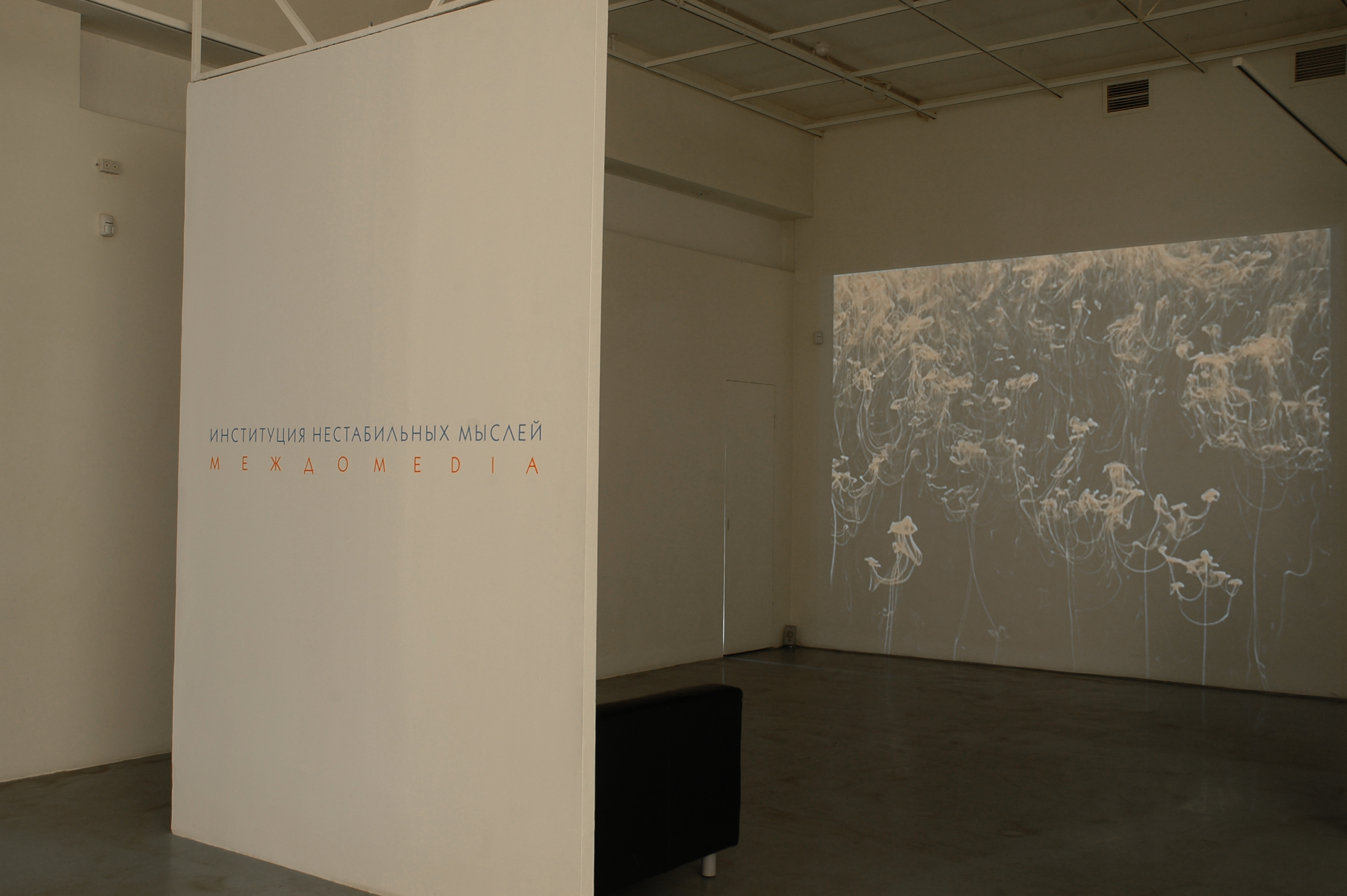 There is no difference between miracle and deceit in art: ancestral home of art is magic illusion. Междоmedia images keep up the old tradition of art-deceits. However, if former art-deceits mystify us with the illusion of texture and volume, then the modern ones come to life through motion aura. Within the range of various works — from Bill Viola and Tony Oursler to Aidan Salakhova — pictures and objects animate themselves dynamically. Institution of unstable thoughts has an essentially different approach to it. The authors’ favourite technique is a rhythmically arranged interchange of static images-projections against picture background (very seldom the artists use a short hung-up video clip, which resembles a still “picture”). For this reason the illusion of miracle is not connected with video-motion, it is based on rhythm, it twinkles somewhere between images.