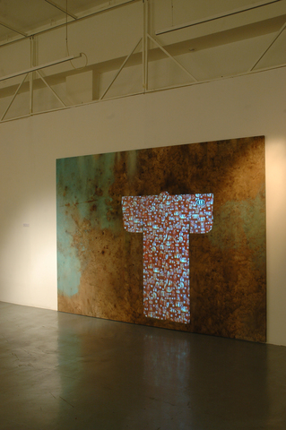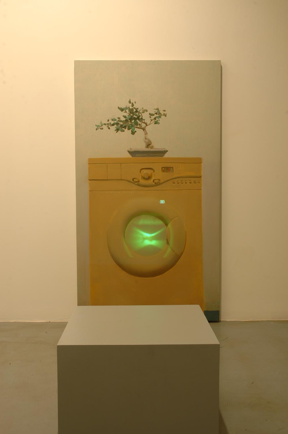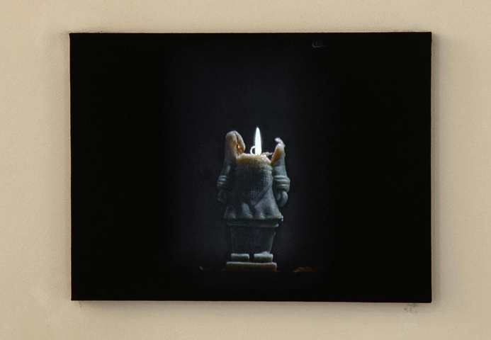 The majority of works, which the public can see, represent technologic hybrids. They include pictures with digital dynamic images projected on them, alongside with some usual paintings as well as just projections. In fact, painting has become a kind of “common” background — wall fragment, a curtain, or an object. Still it is delicate to the extent of complete neutrality — of interjection, of silence. Silence is always mysterious, it implies the unknown, the missing — something which is percept as a miracle. The background obviously lacks image, which justifies the very image being used as a miracle. In this particular case it is a miracle of animated image. If a picture-background embodies some mystery, then it relays the “function of miracle” to another medium — to video. One can’t exist without the other, the intrigue consists in the very interaction between images and technologies.