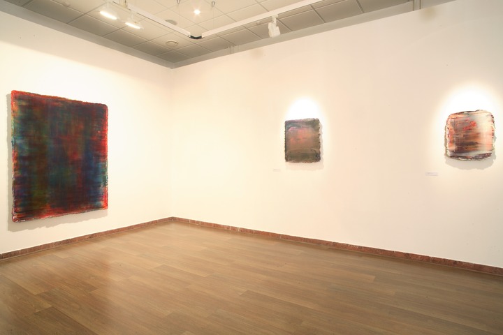 Khesin’s works resemble lumps of colored substance. Physically it is semitransparent silicone combined with certain of pigments. But visually it is something quite different. This fusion produces a substance where color acquires sophisticated depth resembling that of a precious stone. And this association has nothing to do with jewelry, for it is natural, or alchemical, if you like, as purely artistic manipulations eliminate the distinction between the physical mode and the mode of aesthetic imagery. Transmutation makes routinely technological substances overvalued, they begin to function as natural artifacts, some ancient relics for which many great painters of the past had a real fancy. The names of individual “relics” (and unique precious stones always had their own names) are borrowed by the author from old English, a half-forgotten language, so that nothing but their acoustics were readable hiding (but not destroying) their concrete messages. The name for the project as a whole is selected in the same contrasting way: “meta tags” is a term used in contemporary web design, also designating some hidden information.