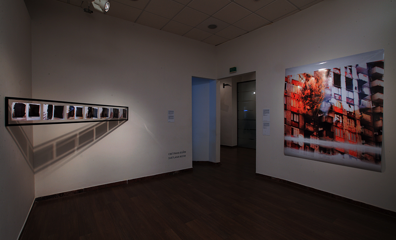 Svetlana Boym. Nostalgic Technologies. Half-destroyed prints show ruins and construction sites of global architecture, portable homes and public transits. Most of them come from cities that have survived wars, revolutions, terrorist acts, and economic crises—from Sarajevo to New York. Multitasking with Clouds series put digital devices to an improper use transforming their pixelated interfaces into reflective surfaces and “black mirrors” that capture fleeing clouds, branches and melancholies of everyday life. The blackberry resembles a “black mirrors” that haunted artists since the Renaissance. The photographs are pulled out prematurely from the printer, leaving the lines of passages and splashes of color. “Communication error!” screams the disgruntled computer voice. This human error makes each print unrepeatable and uniquely imperfect. Manual touch offsets the understanding of photography as an art of mechanical or digital reproduction. The making of each print becomes a mini-performance, not Luddite but ludic. An error has an aura.
