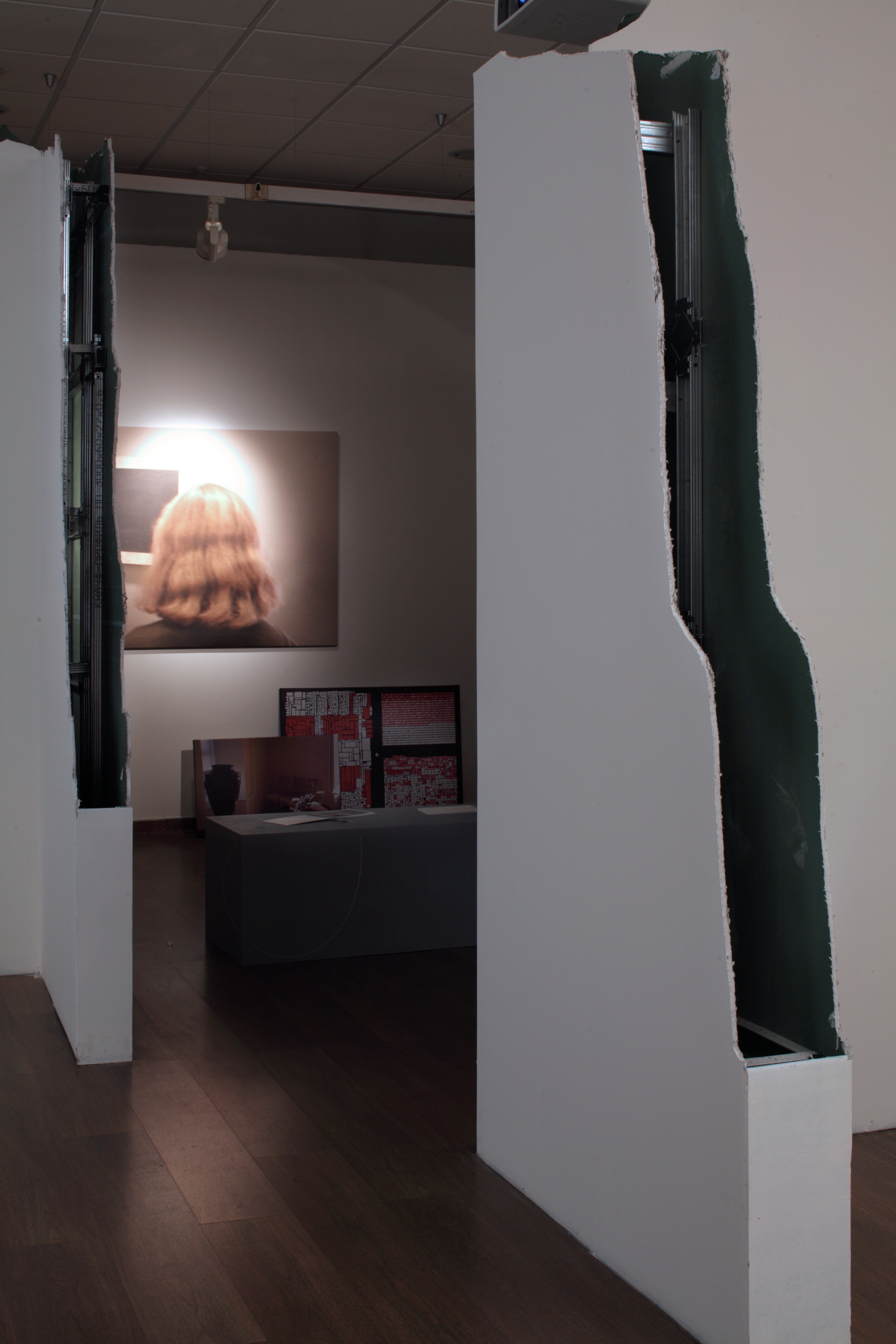 Tobias Putrih LLLL evokes a playground and the utopian urban construction site that remains forever unfinished. Putrih’s installations are site specific but they both engage and estrange the local context. LLLL walls exemplify Shklovsky’s Knight’s move , the zigzag of alternative development of contemporary culture that centers on the eccentric possibilities. LLLL walls remind us of the theatrical props of the Russian avant garde and the paper architecture and explore the play of scales and the borderzone between architecture, sculpture, installation, design and the the phantasmagoric theater.