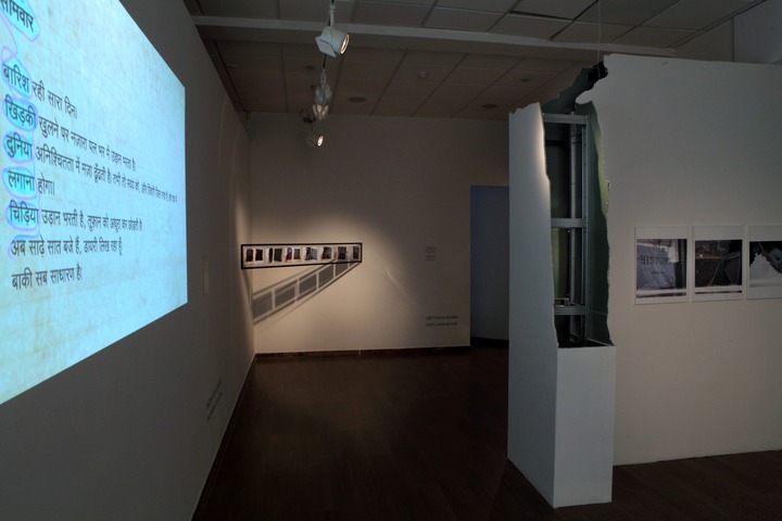 Raqs Media Collective's Strikes at Time is a lucid dream, readings from an occasional anonymous journal, and a long walk at the edge of the city of the night. In that no man’s land annexed by the awakening mind from the fatigue of the labouring day, the work weaves together a disquisition on time in the form of a discreet annotation on the philosopher Jacques Rancière’s “The Nights of Labour”, together with renditions of the found text of a worker’s diary by the CyberMohalla Ensemble, a group of unorthodox proletarian urbanists that Raqs has been in dialogue with over a decade. The shadowy presence of a Yaksha and Yakshi — guardians of wealth in Indic mythologies — stands watching over the work, marking time with questions.