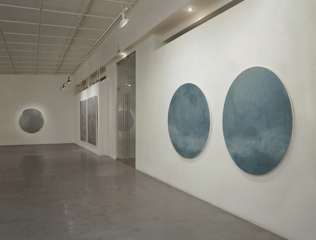 By means of her oeuvre the painter seems to reject the power of direct speech, the naïve belief in word. The truth for her appears to gleam somewhere between the lines, in colour nuances and intonations. Paperno’s painting is set on the borderline between abstraction and figurativeness, between the image of an object and the interpretation of its attributes. It becomes evident at once, from the series’ title: precise and quiet. It doesn’t point at the starry arch, but merely at its maps. However, it is not always exactly the maps. Sometimes it is a globe, sometimes — just a single star. The star, however, may as well turn out to be the “Grey sun”. Not a point, but a tondo (a professional term), a circle, expressively painted over with the most low-key, the most complicated colour. It so happens that the sun is not exactly the sun, and the stars are more like points, celestial nebula — coloristic surfaces, but altogether — it represents sheer painting. Nevertheless, it is not “merely painting”, not a superficial formalism, but a huge mass of deeply emotional substance. It is the very thing, which the night sky represents for each of us: fairytale, mysterious and inaccessibly sublime. And the best art for it is nothing else but a map.