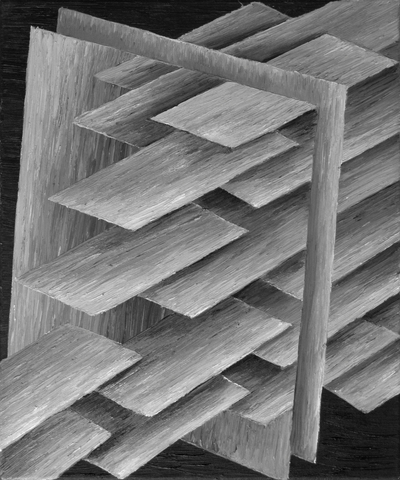 For a long time now, Beatrix Sunkovsky’s oeuvre has been following a certain path. Over and over again cubes, parallelepipeds and rectangles appearing in her works are superimposed, combined with each other and drawn into each other. The emerging images display very clear geometrical structures. This relationship between the visual art and the mathematical construction is by no means a novelty in art — it can be traced as far back as Renaissance, with Leonardo’s remarks in the introduction to his treatise on painting that the study of the perspective is a must for anybody who really wants to achieve something in painting, and that both the design and the study of the model should only come later.