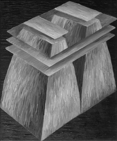 This meditative journey to the premises of the art of painting also finds its reflection in the color palette used by the artist. Up to mid 1980s B. Sunkovsky also painted in blue and green colors, but she gradually abandoned the color altogether, and has been employing the grisaille technique ever since, consistently varying certain motifs in her works. The absence of color and the flows between the black and the white tend to reveal the presence of the most diverse colors in the viewer’s imagination, inducing the viewer to take more direct part in the picture, which is revealed to him or her only after it is given sufficient attention. Each work bears in itself an element of incompleteness, which manifests itself either through the nature of the series, or through the image and the analysis of the premises of the visual, and all these are only brought to completion by the spectator’s view.