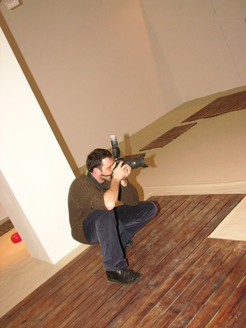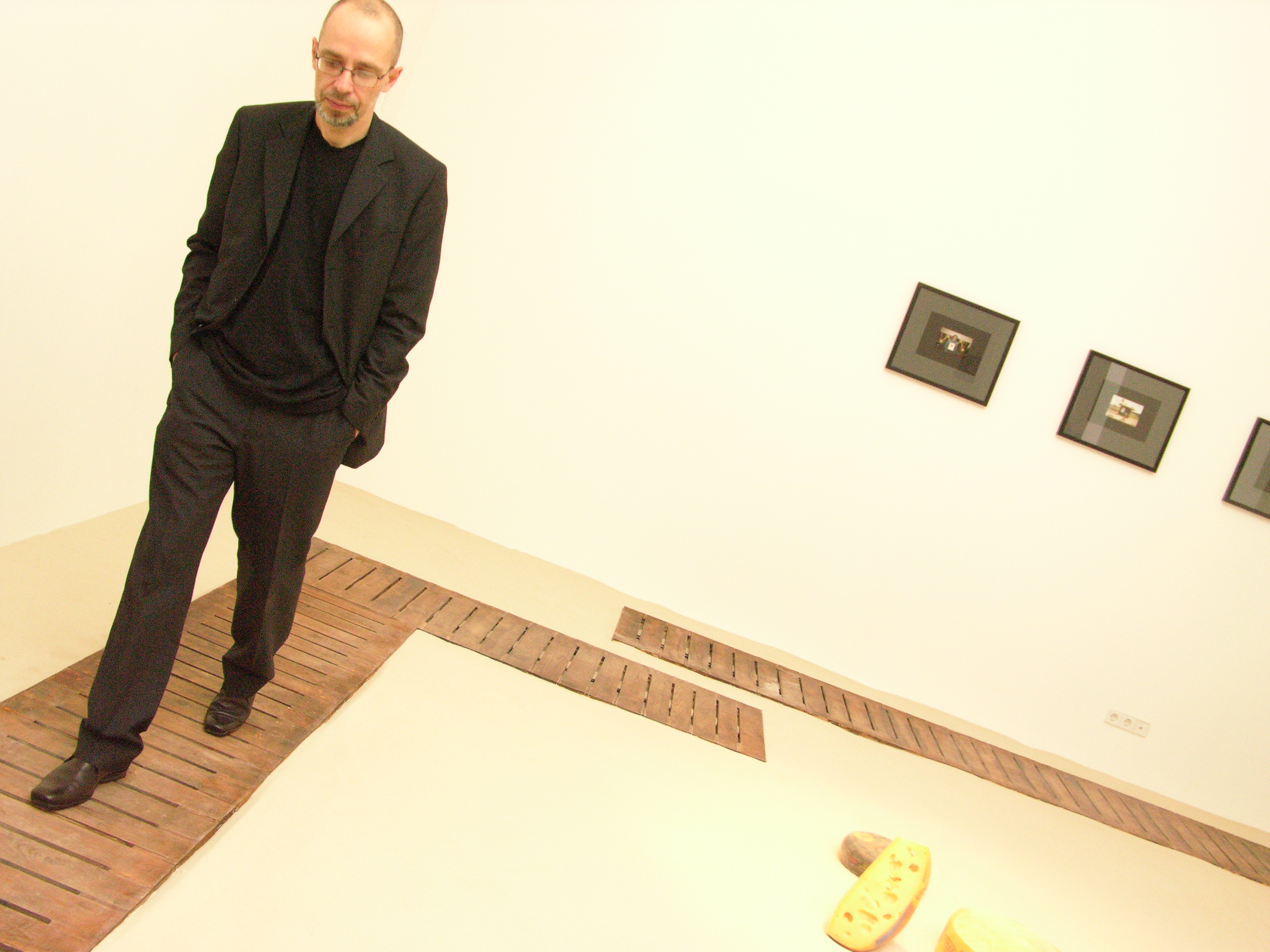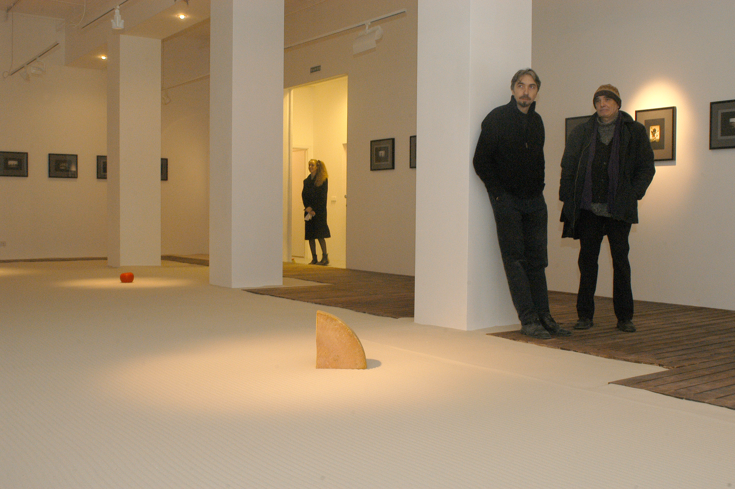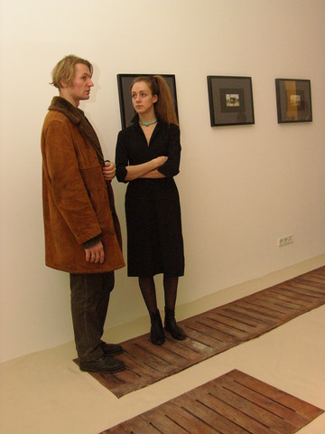 The word “cult” means here not so much “fashionable and elite” as concerns cult and culture. Zakharov’ and Monastyrski’s total installation “Mouse Hunting” seems to clearly show this connection — connection with Eastern spirituality. No one can find any sociological intonations in this project, it doesn’t have any signs of all these “contemporary and up-to date” tendencies, that became standards of present art scene. But “Mouse Hunting” is witty and elegant. Zakharov installs the form of zen rock-garden in the gallery space, and Monastyrski surrounds this garden with photographs pierced with “golden” rivets reminding constellations.