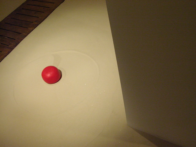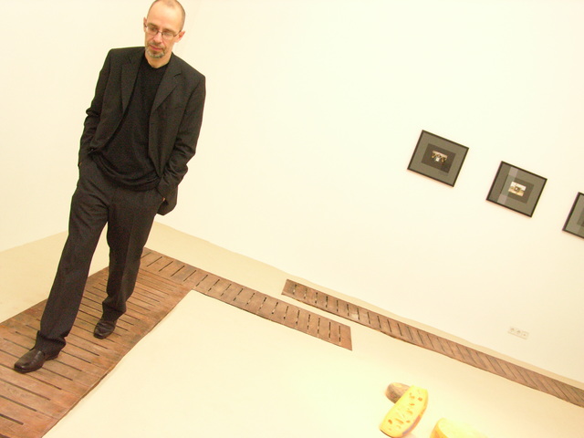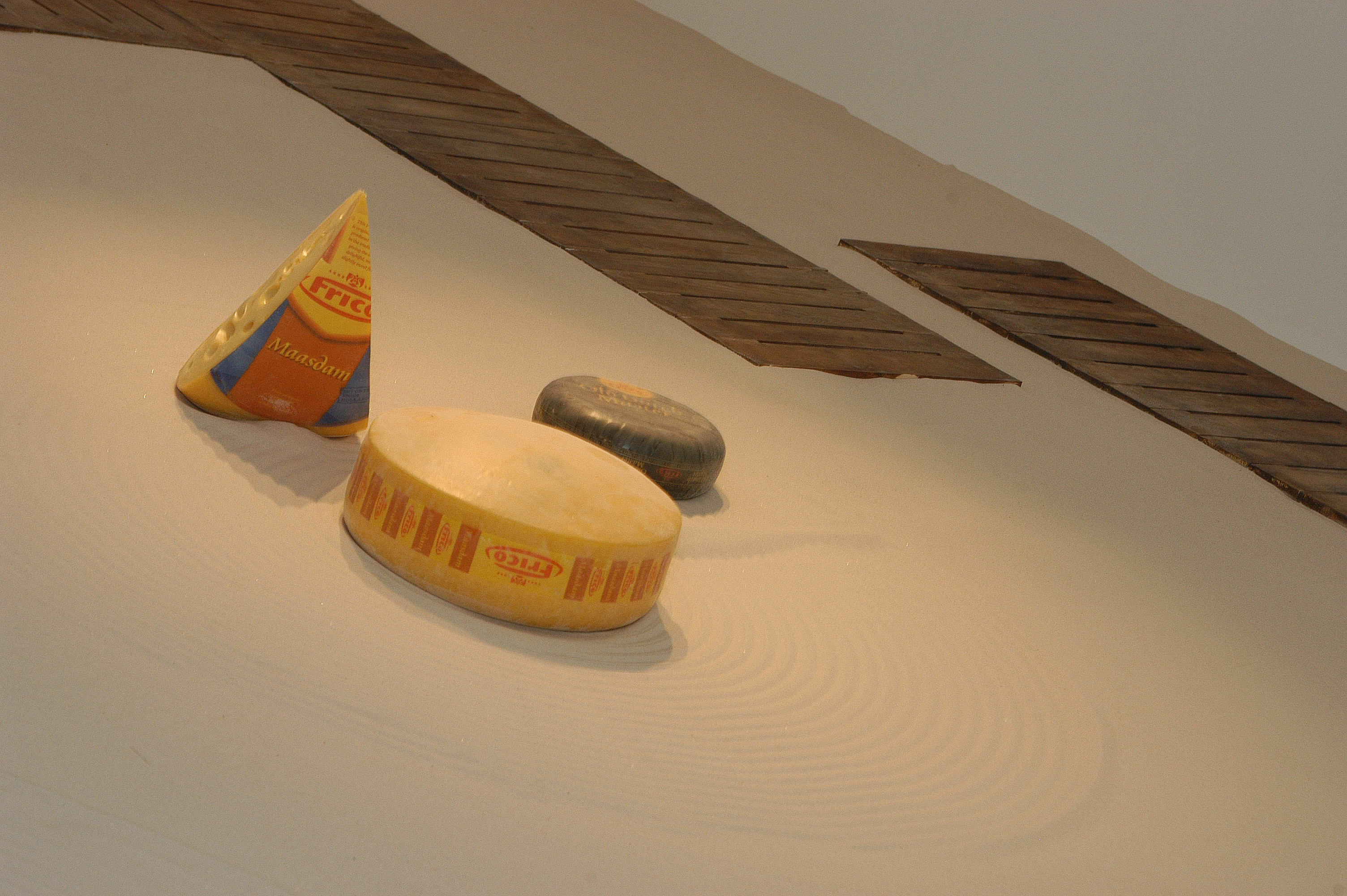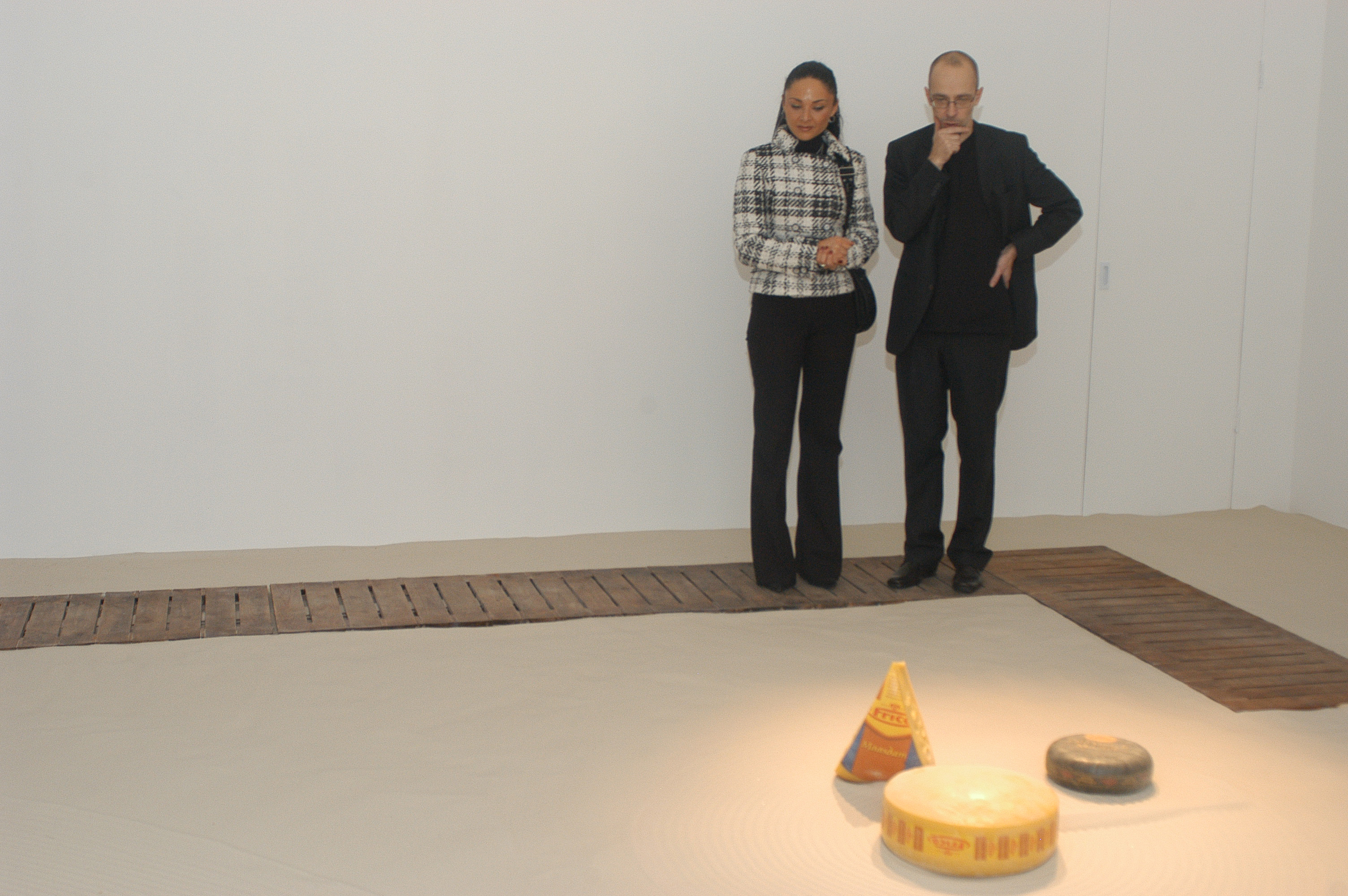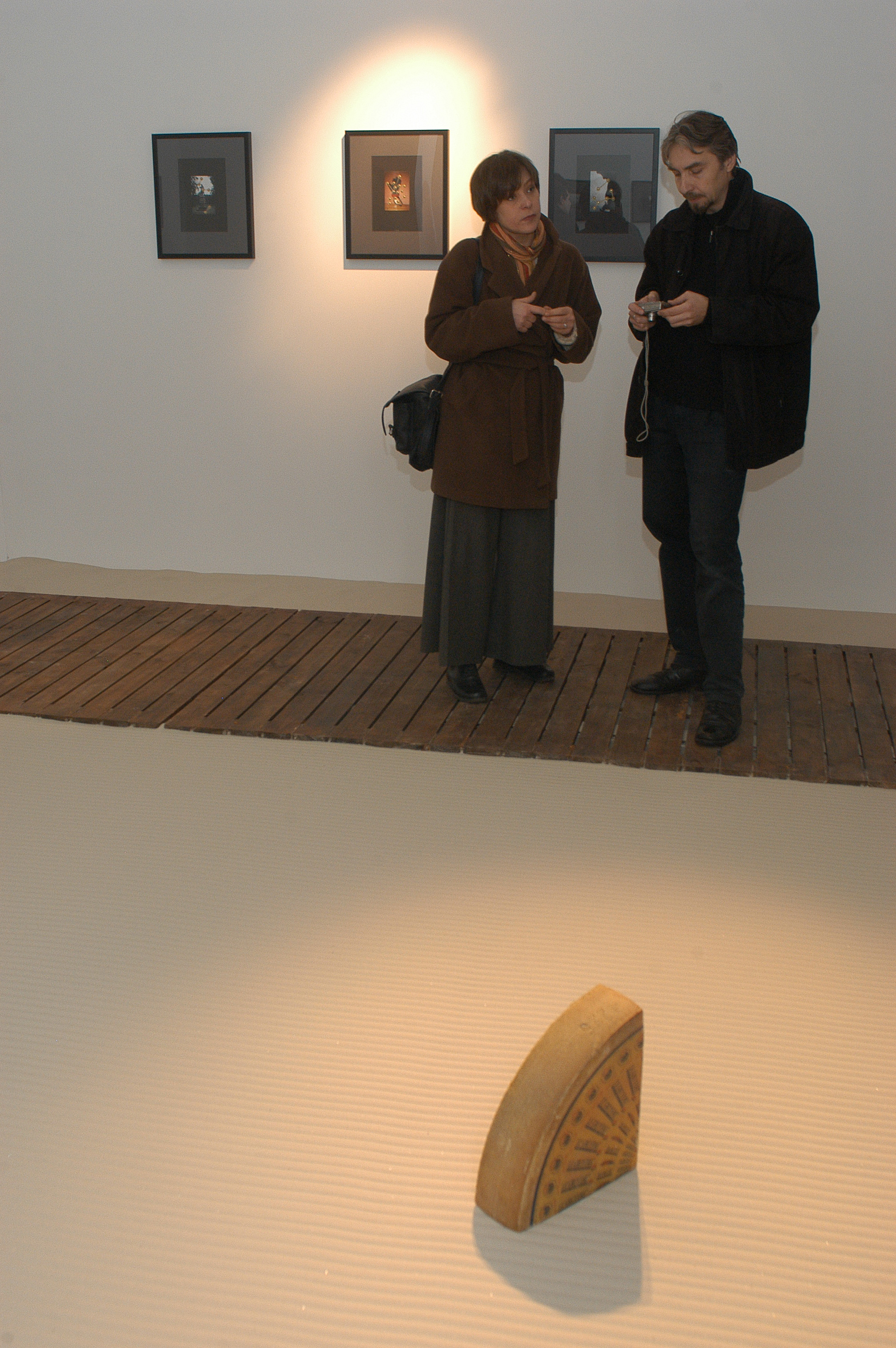 Vadim Zakharov on the project: “My installation is based on a story of a mouse I once thought of. Once upon a time, a very long time ago, a mouse found its way into an old monk’s bowl lured by a huge piece of French cheese with inimitable, heavenlike smell. The monk saw the mouse, smiled, scratched its ear and said: “Well, I give you this piece of cheese as a gift forever. Put in on the sandy floor of our monastery garden and keep it safe as your own precious self. Because if you eat this piece which is many times your size, you are going to turn into an elephant and die.” The mouse didn’t eat a single crumb of it since then. The very next day, the old monk disappeared from the monastery never to be seen again, while the mouse still lives and is going to live so long as the untouched piece of cheese lies on the sand.