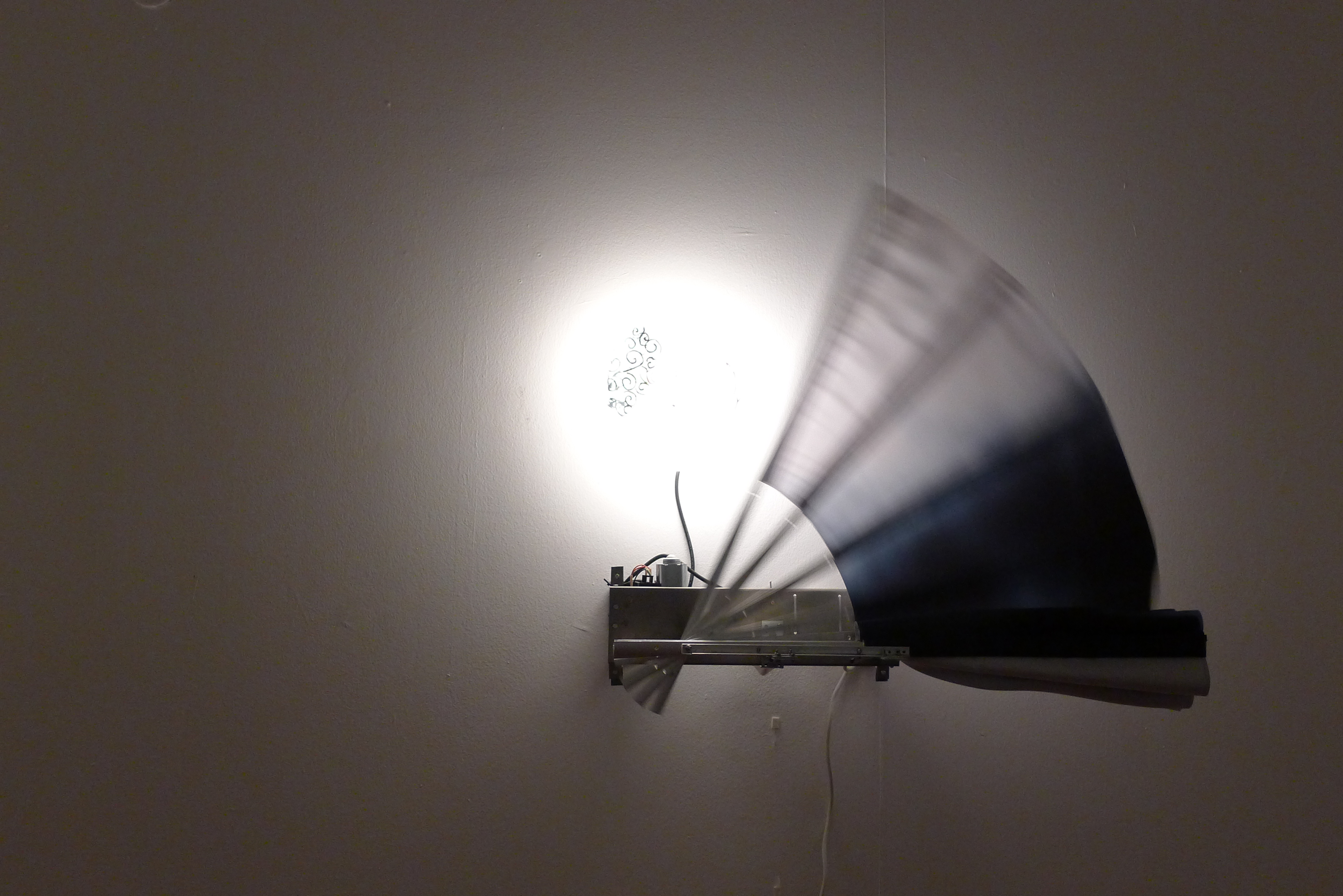 Andrei Filippov has built an installation for the exhibition consisting of dynamic objects with the title Rolling Blackout (the Russian term translates literally as “fanlike power cut”). In this case we literally have a machine, a genuine mechanical construction: large fans with a representation of the sky, which are opened and closed by electric motors. A rolling blackout is a complete or partial shutdown of power supply for technical reasons. But for Filippov the shutdown is associated directly with the end of the world in its Judaeo-Christian version, or, more precisely, with one of the events of global culmination, in which “the heaven departed as a scroll when it is rolled together” (Book of Revelation, 6:14) or when “the heavens shall be rolled together as a scroll” (Book of Isaiah, 34:4). The biblical comparison of the heavens with a scroll is transformed by the artist into a coincidence of scroll and heavens or, rather, he swaps the scroll for a fan, which he presents as a book-map of the heavens. Picture, book, scroll and fan are for Filippov invariants of a single thought-form, whose historical origins are to be sought, not in the European tradition, but in the Eastern, and more specifically the Chinese tradition, where scroll, fan and screen have long served both for the inscription of texts (essentially, as alternative book formats) and as a support for painting, and this is perfectly natural, since writing and representation in Chinese culture grew from a common root and were therefore easily united. If we then remember that Chinese culture has always been important for the Moscow conceptualists and that they felt a certain kinship with the thinkers-literati-artists of ancient China, the logic of creation of Rolling Blackout becomes clearer still.