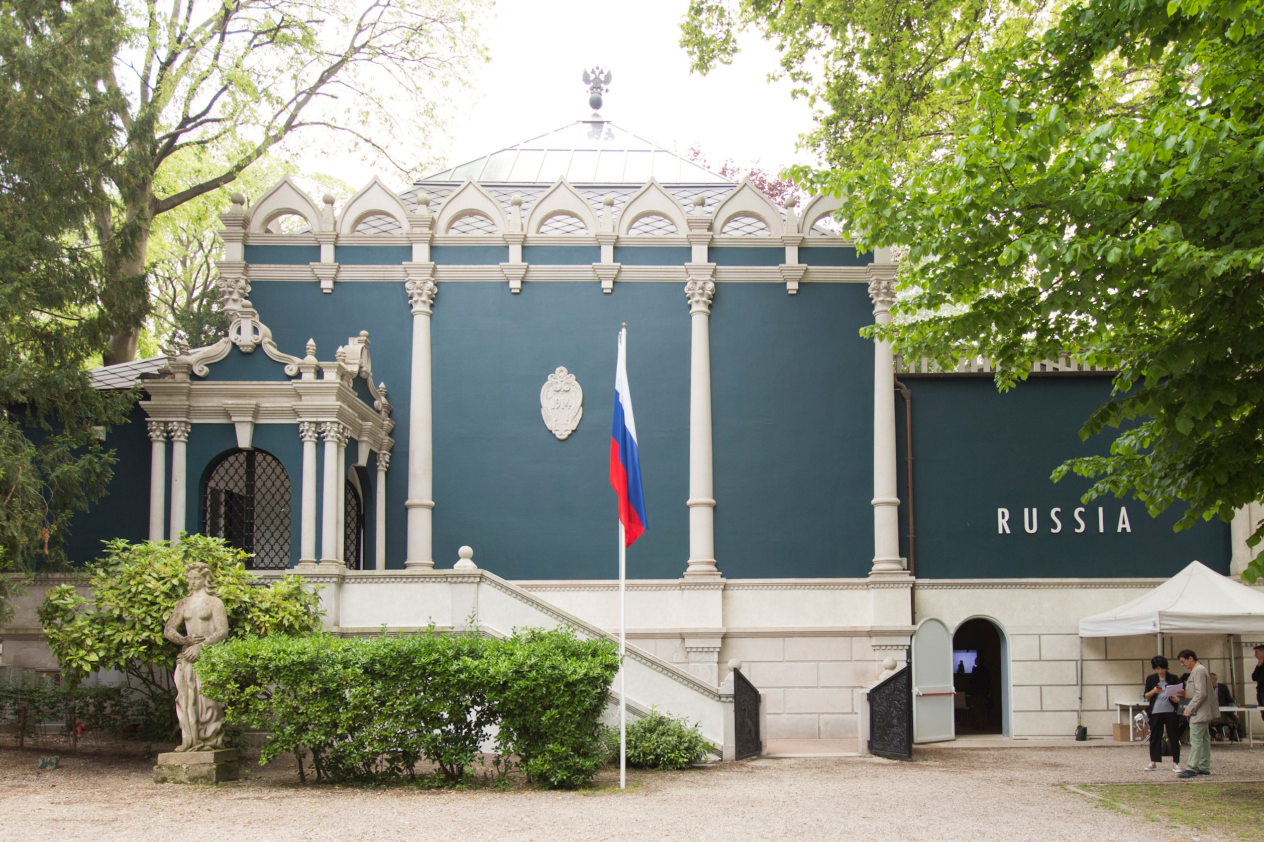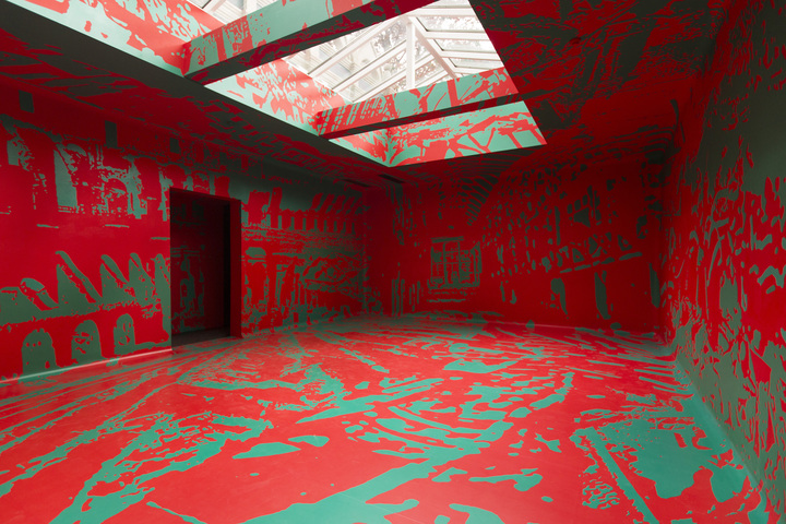The Russian Pavilion is painted green, a color deliberately chosen to evoke the original appearance of the building, designed by Aleksei Shchusev in 1914. With the pavilion, Shchusev created a building uniquely suited to accommodate and enhance various artistic practices. Nakhova’s project deliberately fuses the functionality of Shchusev’s structure with her own use of the latest technologies. According to Tupitsyn, the Green Pavilion should also be seen as engaged in a dialogue with Kabakov’s Red Pavilion, executed for the 45th Venice Biennale, of 1993. With The Red Pavilion, Kabakov demonstrated the importance of color discourse for both Russian modernist and postmodernist artists, who shifted the approach to color from one of formalism to “socio-formalism.” Kabakov erected the Red Pavilion on the building’s grounds, leaving the pavilion itself empty—a potent metaphor that embodied the non-institutional status of vanguard artists and their non-participation in the Soviet culture industry. While Kabakov’s Red Pavilion marked the end of the Moscow vanguard’s hermetic phase, Nakhova’s Green Pavilion resumes the debate concerning these artists’ departure from local contexts in favor of more global significance in the post-Soviet era.