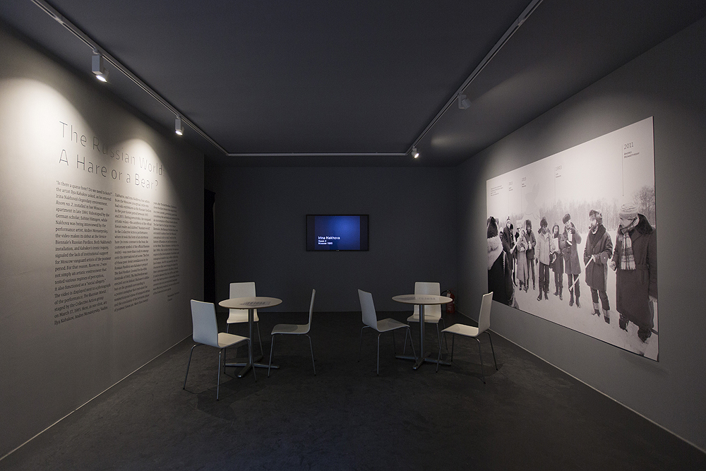 In the early 1980s, using one of the rooms in her Moscow apartment, Nakhova embarked on a series of environments entitled “Rooms.” The series anticipated Ilya Kabakov’s iconic Moscow installation The Man Who Flew into the Cosmos from His Room, which he later dubbed a “total installation.” Both artists made the step into three-dimensional space as a revolt against the stagnating conditions of the production and reception of Moscow vanguard art in the pre-perestroika era. Together with the Russian Pavilion curator, Margarita Tupitsyn, an internationally renowned expert on the Russian avant-garde and contemporary art, Nakhova has here realized a series of ambitious environments that revisit the paradigms of the Russian avant-garde, as well as explore and redefine Nakhova’s concepts of spatial relations and viewer interaction.