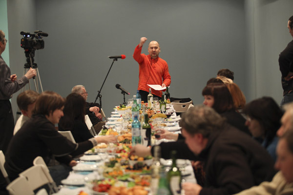 Then came the Blue Noses and their eccentric, off-the-wall actions, brimming with inventiveness, fun and — despite their carnival energy — with an evident friendliness and delicacy, which unfortunately provoked a completely unmotivated aggression on the part of people worn down by total and chronic suspicion. Those people have no suspicion what an important service they in fact do for the artist, working disinterestedly for his success.