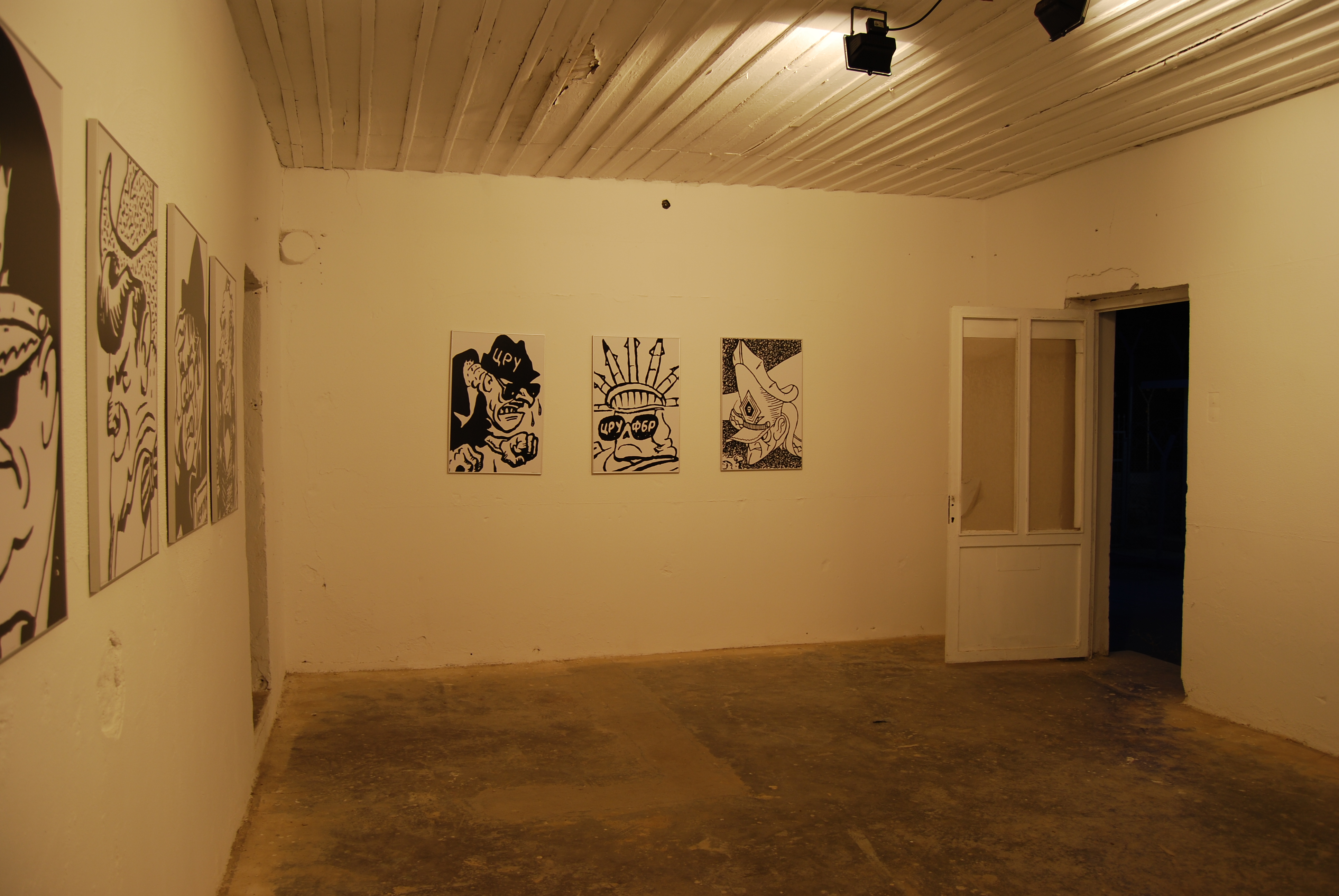 The inseparable part of the exhibition in Greece is the recitation performance based on the poetry collection by Vassilis Amanatidis “The Hair and The Countryside”(Ο ΛΑΓΟΣ ΚΑΙ Η ΕΞΟΧΗ) which is shown by the author and his translator into Russian Eugeny Nikitin. The live voices of poets reading one after another the paradoxically absurdist and calm verses in Greek and in Russian transfer the image of perilous thoughts and transformations into the surrounding space and establish in this way liaisons between still visual art and temporal sounds, between languages, between ideas, between art and public.