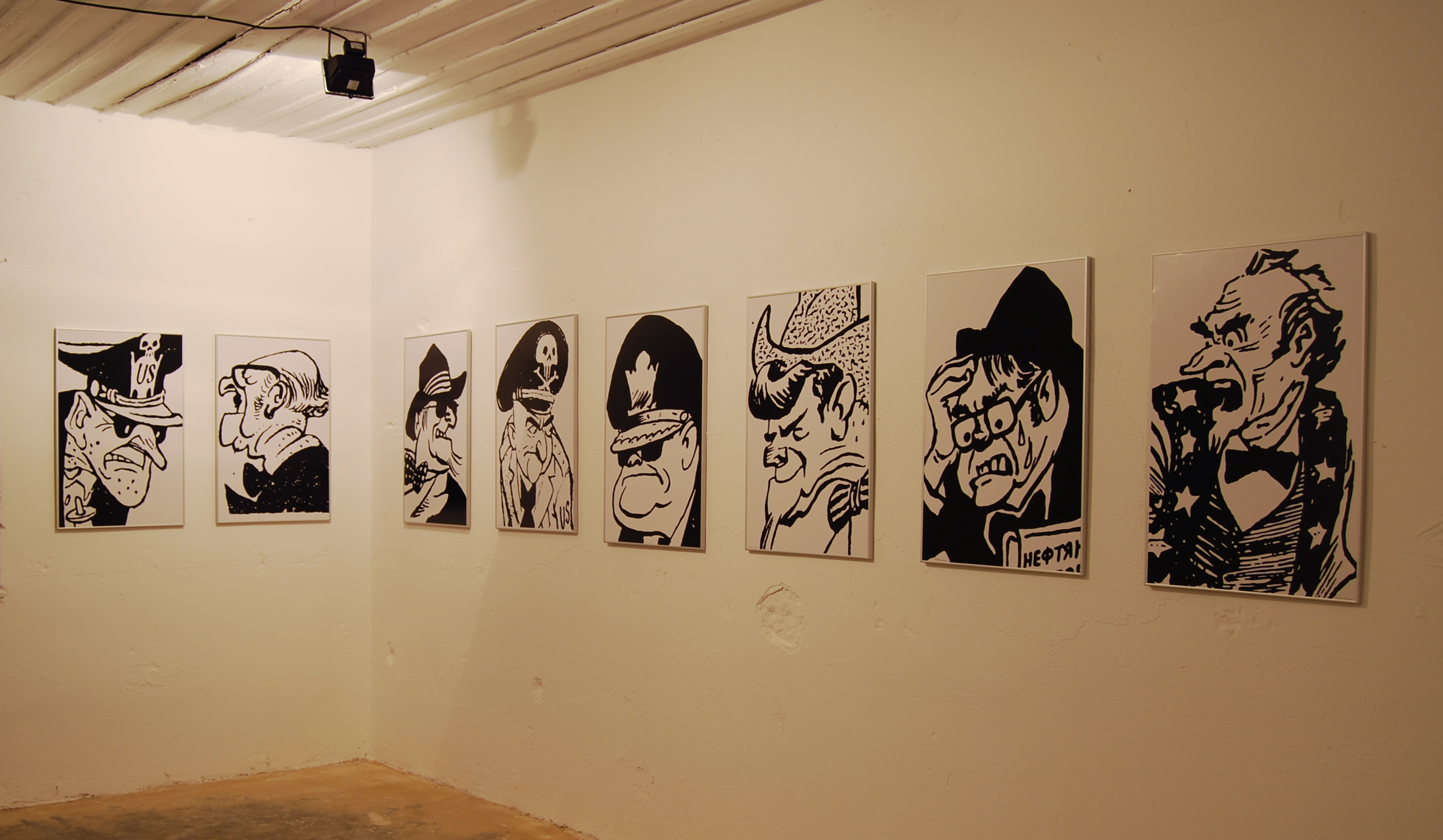 A true player, Bakhchanyan is not content with pointing to a phenomenon; he needs to enjoy it fully. In his series of drawings entitled “Americans as seen by Russian”, he explores in great detail every possible variation of aggression, dullness, self-conceit and belligerence. In another series of drawings dedicated to Stalin and stylised to match the up-beat and simplistic style of Soviet textbook illustrations, the face of the Leader of the People shines upon the entire Soviet universe never leaving it unattended even for a minute, like the Sun during a polar day. The sleep of reason produces monsters, and Bakhchanyan displays them in the merry circus show of his wit.
