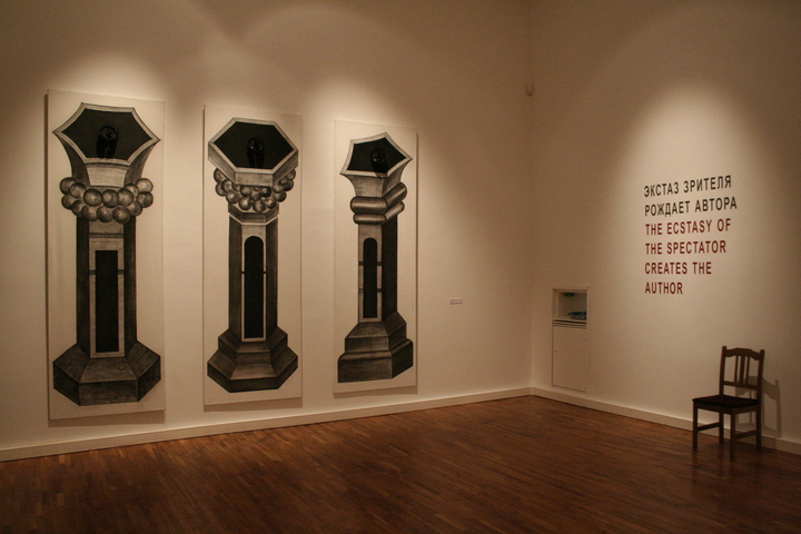 Vadim Zakharov’s creative position balances on the borderline between cultural tradition and the search for a new, contemporary language in art. In his works, one can recognize allusions to Dante, Cervantes, Shakespeare, Proust, Gogol, Rilke, Cezanne, Malevich, and many other representatives of high culture, as well as the Japanese and Chinese cultural traditions.